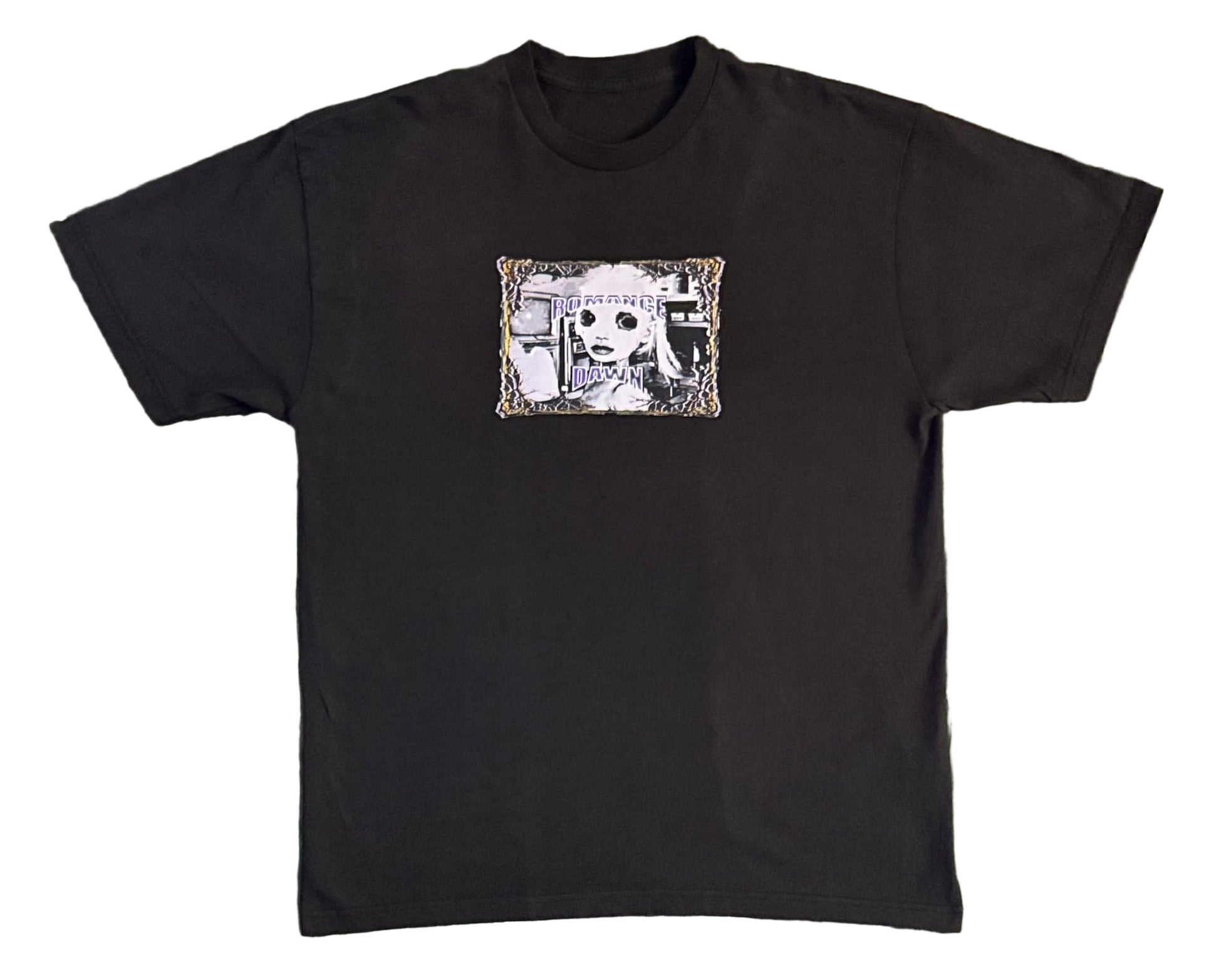 This is a closed collar boxy graphic tee shirt that is amongst the "LOOK AT WHAT THEY DID"products of our first collection. The shirt depicts a portrait of a "zombie girl". The intentions are to address the feeling of being a "ginny pig" or "test subject" in the world we live, feeling forced to comply with the wishes of what big corporations decide to integrate within our society. In some cases these integrations can lead someone down a very dark path becoming an after effect of another mans dream...slowly we may be becoming zombies blind to whats right and wrong. - DAWN SOLO